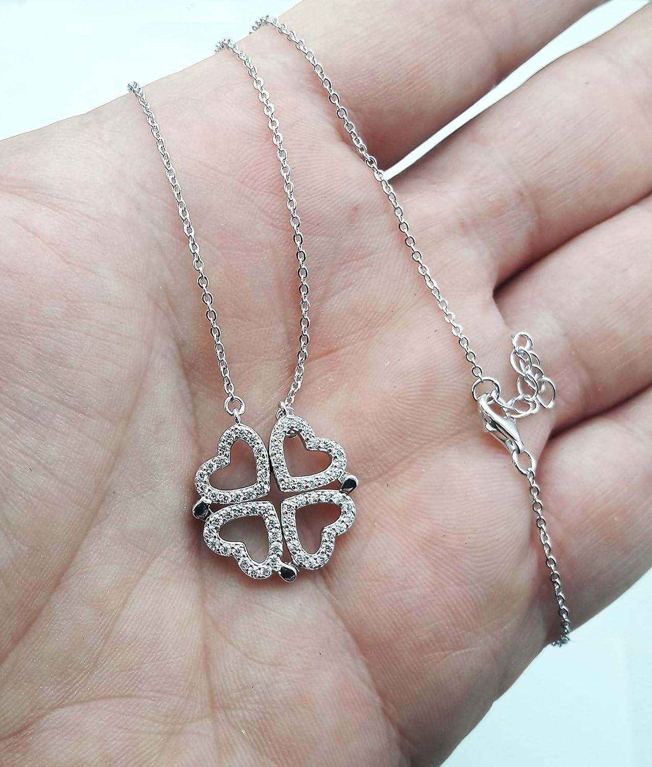 • Concepto de Diseño: Un trébol de cuatro hojas es un símbolo de buena suerte. Además, cada hoja tiene su propio significado: salud, dinero, amor y prosperidad. El colgante de trébol de cuatro hojas consta de 4 corazones de amor, y presenta dos maneras de llevarlo: como un collar de corazón y como un collar de trébol.